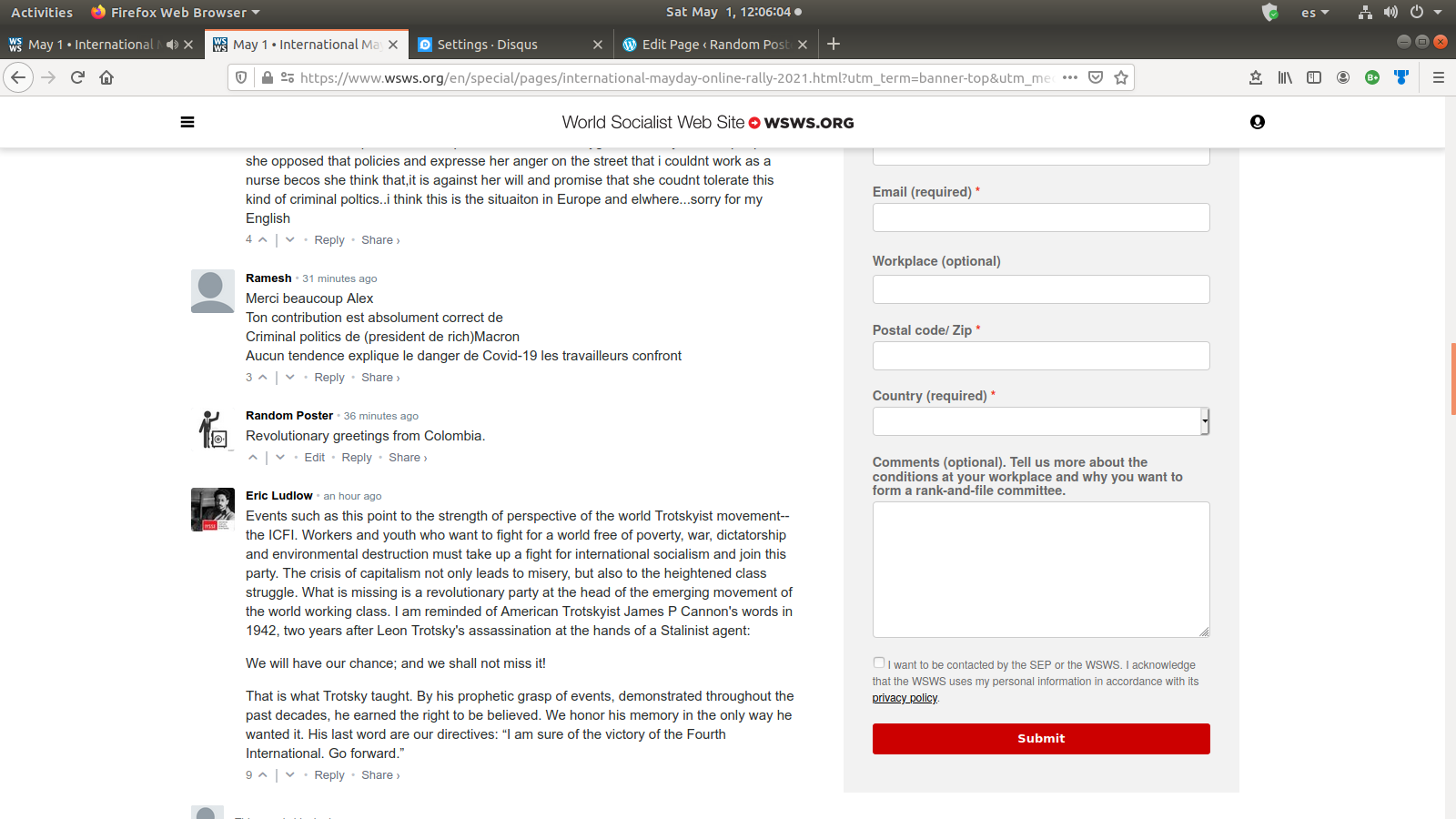 Can you see the WSWS-Censored Comment? It simply says, “Revolutionary greetings from Colombia.”