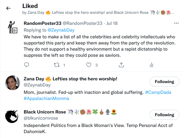 Zeynab Day, Former Executive Director of Movement for a People´s Party, Likes Democratic Power Faction Tweet