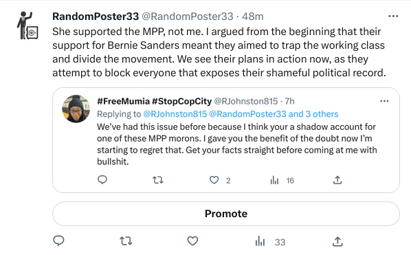 She supported the MPP, not me. I argued from the beginning that their support for Bernie Sanders meant they aimed to trap the working class and divide the movement. We see their plans in action now, as they attempt to block everyone that exposes their shameful political record. pic.twitter.com/2Ct5FEl0xd