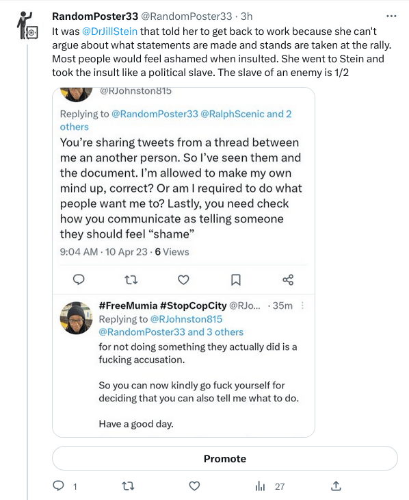 It was @DrJillStein that told her to get back to work because she can't argue about what statements are made and stands are taken at the rally. Most people would feel ashamed when insulted. She went to Stein and took the insult like a political slave. The slave of an enemy is 1/2 pic.twitter.com/aCVLZy6rwe