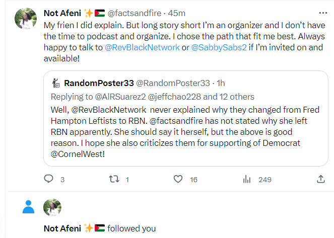 My frien I did explain. But long story short I’m an organizer and I don’t have the time to podcast and organize. I chose the path that fit me best. Always happy to talk to @RevBlackNetwork or @SabbySabs2 if I’m invited on and available! https://t.co/BzuNq2676I